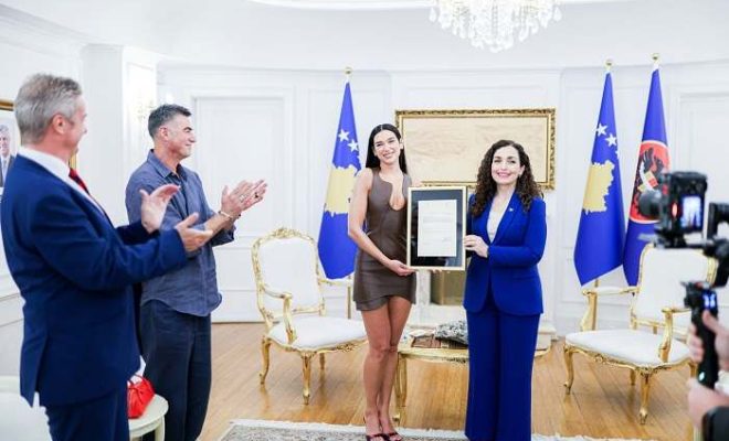 “Dua dhe Kosova kanë qenë gjithmonë të pandashme. Ajo ka qenë dhe vazhdon të jetë një nga zërat më të fuqishëm në skenat më të mëdha të botës, duke bërë histori me të arriturat e saj dhe duke u shndërruar në inspirim për miliona njerëz anekënd globit. Mirënjohja jonë është e pafund për gjithçka që Dua ka bërë dhe vazhdon të bëjë për Kosovën, për rininë tonë, për artin tonë dhe për imazhin ndërkombëtar të vendit tone”, shkroi Osmani.