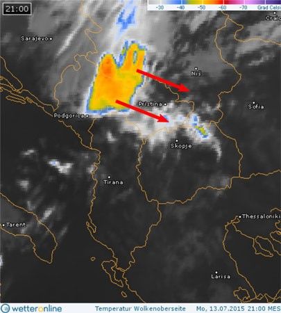 Sipas PrishtinaWeather, gjatë mbrëmjes në lindje të Bosnjës dhe Hercegovinës filloj të zhvillohej një shtrëngatë me reshje shiu, e cila gjatë orës së fundit po afrohet mbi vendin tonë.
