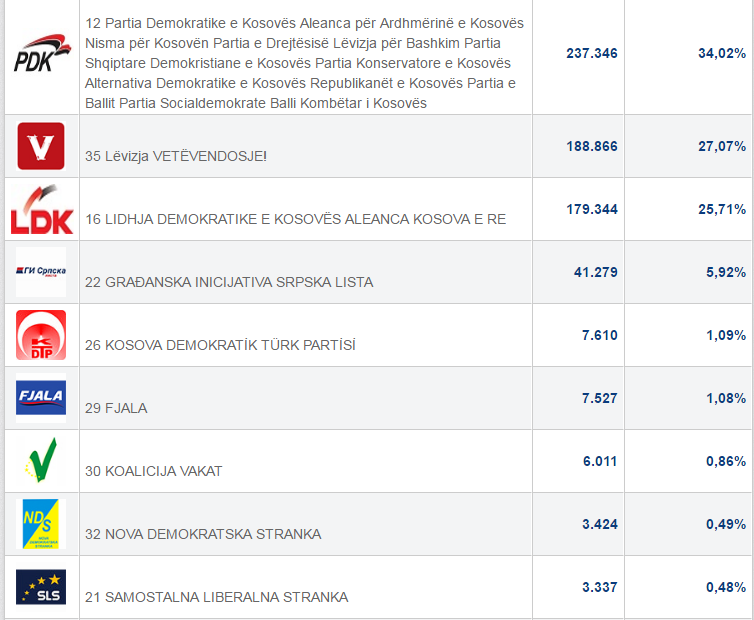 Rezultatet e tanishme sipas faqes zyrtare të Komisionit Qendror të Zgjedhjeve janë kështu: