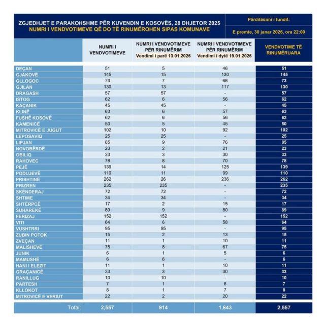 Në Qendrën për Numërimin e Rezultateve është përmbyllur rinumërimi i 2,557 vendvotimeve të zgjedhjeve të parakohshme për Kuvendin e Kosovës.