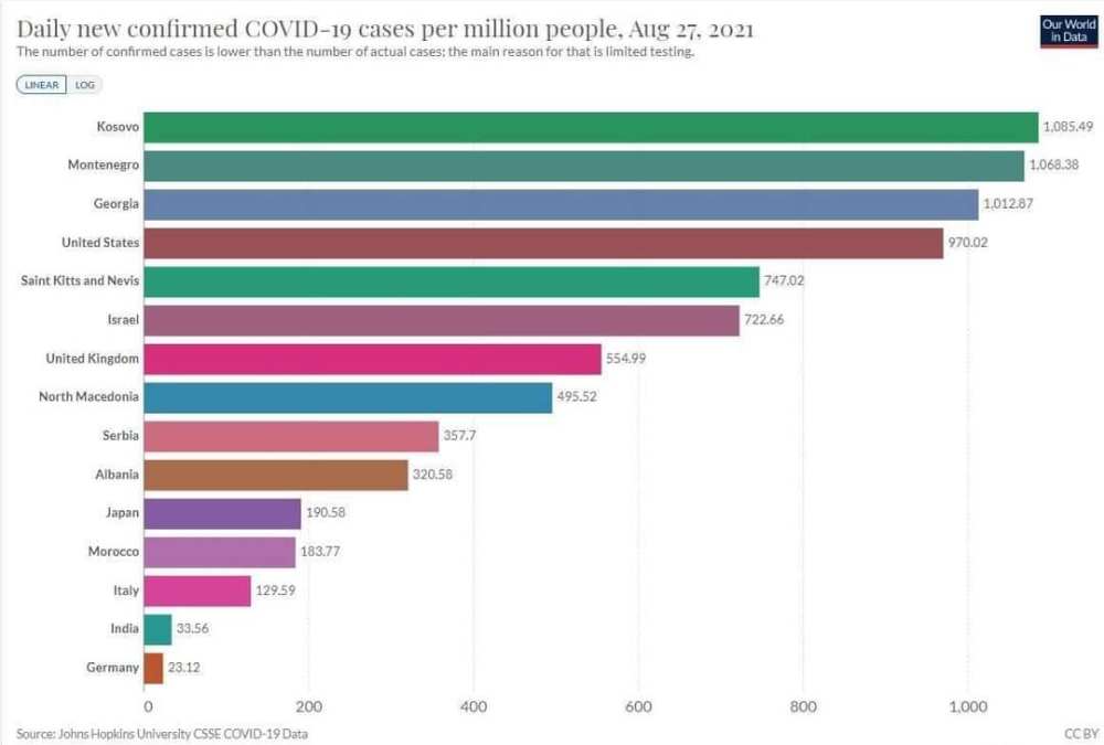 Statistikat e institucioneve me renome botërore, si Universiteti “Johns Hopkins”, po e rëndisin Kosovën ndër vendet e para në botë për infektime të reja dhe humbje jetësh nga Covid-19, në proporcion me popullsinë.