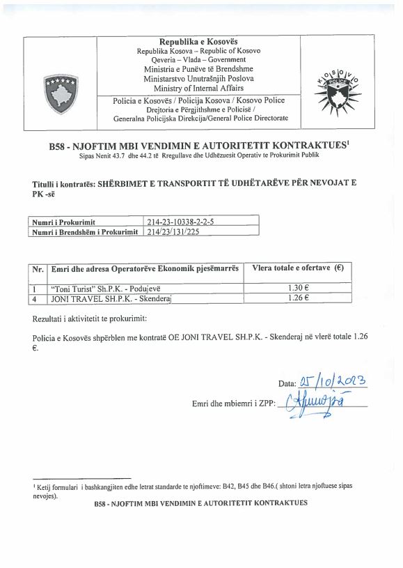Sipas njoftimit në Këshillit Rregullativ të Prokurimit Publik (KRPP) prokurimi i policisë e kishte shpallur fituese një kompani me çmimin 946 mjië e 800 euro si ofertë më të lirë, por një nga kompanitë pjesmarrëse në këtë proces tenderimi ka deponuar ankesë në Organin Shqyrtues të Prokurimit (OSHP).