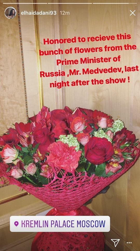 Elhaida është ndjerë e nderuar nga kryeministri i Rusisë Dmitry Medvedev, i cili pas shfaqjes i ka dhuruar një buqetë lulesh.