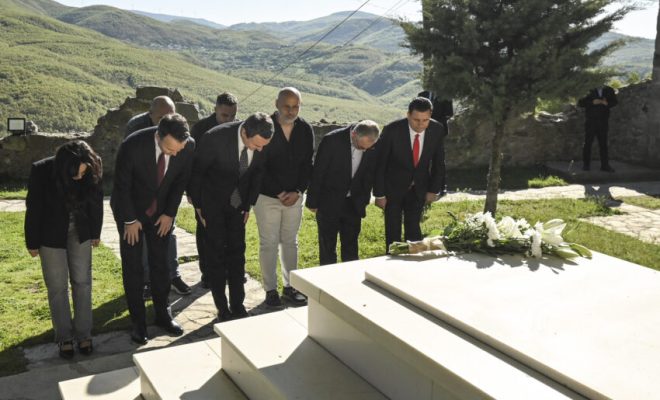 Kryeministri Kurti dhe ministri Peci, të shoqëruar edhe nga deputetë të Kuvendit, vendosën lule të freskëta te lapidari i ngritur në nderim të viktimave civile dhe katër dëshmorëve të kësaj zone, të rënë në luftën çlirimtare.