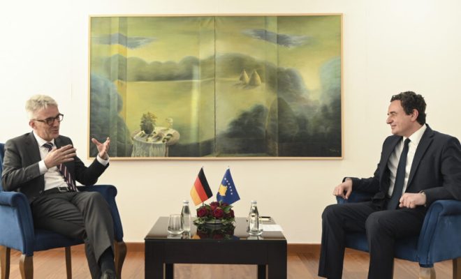 Në takim u veçua edhe roli i mërgatës kosovare në Gjermani, me mbi 600 mijë qytetarë që përbëjnë një urë shoqërore dhe ekonomike mes dy vendeve. Kryeministri falënderoi ambasadorin për mbështetjen gjermane në fushat e arsimit profesional, integrimit në tregun e punës, shtetit të së drejtës, tranzicionit të gjelbër dhe reformave infrastrukturore, duke theksuar se këto fusha përkojnë me prioritetet e Qeverisë dhe me progresin e bërë në vitet e fundit.