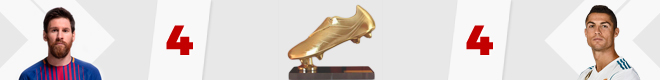 Ronaldo e ka fituar katër tituj në karrierë ‘Këpucën e Artë’ (tre me Los Blancos dhe një me United), ndërsa Messi po ashtu e ka fituar aq herë me Barcelonën.