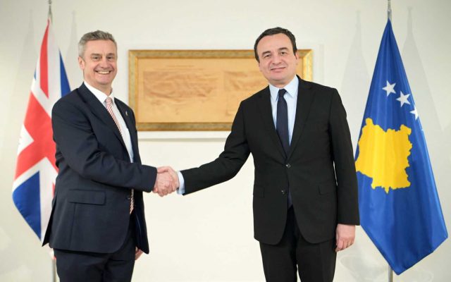 Kryeministri i Kosovës, Albin Kurti, priti në takimin e parë zyrtar pas dorëzimit të kredencialeve, Ambasadorin e ri të Mbretërisë së Bashkuar, Jonathan Hargreaves.