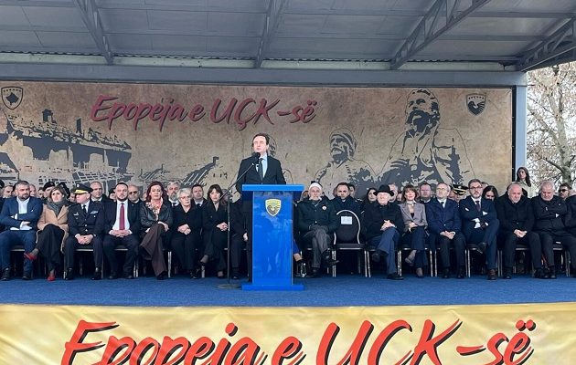 “FSK sot rreshtohet me ushtritë e NATO-s, zbarkon misione që ndërtojnë dhe mirëmbajnë paqen kudo nëpër botë. Dhe e gjithë kjo ka ndodhur, të nderuar pjesëmarrës, dhe po ngjan, nën urdhra dhe komanda të dhëna nga një kazermë ushtarake me emrin ‘Adem Jashari’, këtu ku jemi mbledhur sot, më 5 mars 2026, në ditët e para të Epopesë së UÇK-së, për ta kujtuar dhe nderuar pikërisht rezistencën e kryekomandantit Adem Jashari dhe të familjes së tij. Përpara nesh janë rreshtuar kuadratet e Ushtrisë së Kosovës, ashtu siç duhet t’i ketë ëndërruar Adem Jashari dikur, në një kohë kur Ushtria e Kosovës ishte veçse një ide që besohej nga fare pak njerëz. Përballë tyre jemi të gjithë ne, qytetarë të vendit e zyrtarë të shtetit tonë, që çdo ditë e më shpesh po e dëshmojmë rritjen, ngritjen dhe përparimin e Ushtrisë së Kosovës. Kjo edhe si rezultat i investimeve milionëshe të qeverisë së Republikës në pajisje dhe sisteme të armatimit, në trajnime dhe shkollime të ushtarakëve tanë nëpër akademitë më të mira të vendeve të NATO-s, si dhe në strukturën dhe infrastrukturën e FSK-së”, tha Kurti.