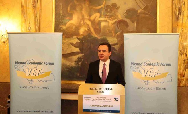 Në kryeqendrën e Austrisë, Kryeministri i Republikës së Kosovës, Albin Kurti mori pjesë sonte në ceremoninë hapëse të edicionit jubilar të 20-të të Forumit Ekonomik të Vjenës.