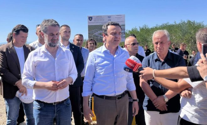 “Ato janë gjëra të Prishtinës, atje i diskutojmë ato. Këtu jemi për investimin 11 milionë euro për stadiumin e futbollit në Suharekë”, tha Kurti.