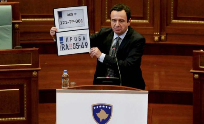 Kurti është shprehur se njohjen e targave RKS Serbia po përdorë për të mbuluar refuzimin zyrtar të Marrëveshjes së Brukselit dhe për ta ulur presionin nga Perëndimi për zgjedhjet e manipuluara në Serbi.