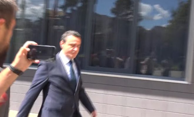 Ai ishte i shoqëruar si zakonisht nga sigurimi i tij dhe në momentin kur kolegët gazetarë provojnë t’i bëjnë ndonjë pyetje, ecën sikur s’po dëgjon…
