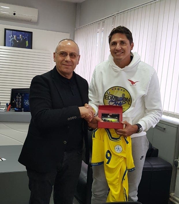“Presidenti Ademi në fund të takimit ia ka dhuruar Edmilsonit një fanellë të Kombëtares së Kosovës si dhe një plaketë me stadiumin “Fadil Vokrri””, thuhet në njoftimin e FFK-së./Telegrafi/