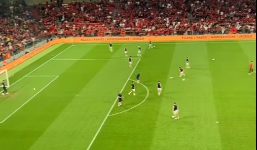 Lojtarët e Serbisë janë pritur me këngën “Mora fjalë” e thirrjet “UÇK, UÇK”, sa ishin në nxehje para nisjes së ndeshjes.