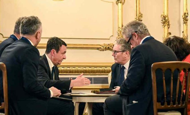 Në një postim në platformën “X”, Kurti ka njoftuar se me Starmerin kanë diskutuar për marrëdhëniet bilaterale dhe për temat kryesore të samitit: sigurinë, zhvillimin ekonomik dhe migracionin.