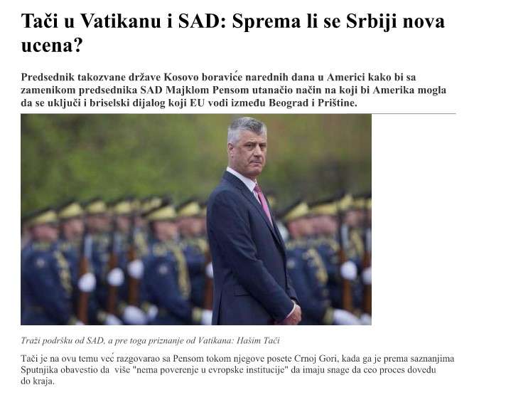 Ndërkaq “Vesti Online” është treguar konspirative kur ka shkruar për vizitën e Thaçit në Vatikan dhe SHBA.