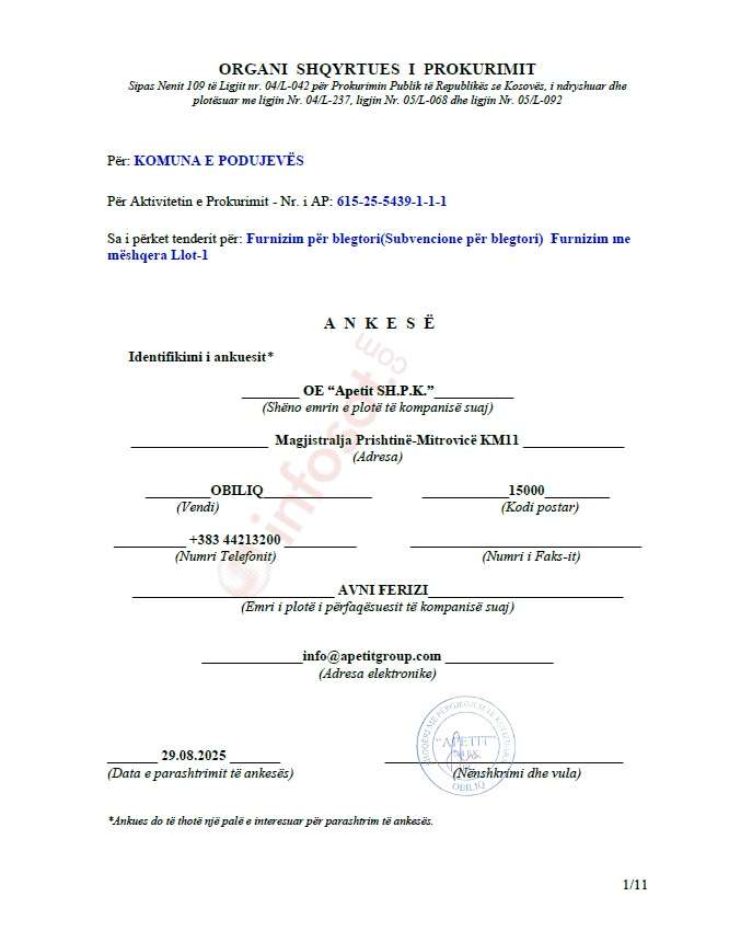 Tenderi i Komunës së Podujevës për furnizim me meshqerra, me vlerë të parashikuar prej 429 mijë euro, ka përfunduar në Organin Shqyrtues të Prokurimit pas një ankese të paraqitur nga operatori ekonomik “Apetiti”. Ky operator ka kërkuar nga institucioni përgjegjës që të shqyrtojë në detaje gjithë procedurën e zhvilluar nga komuna, duke pretenduar se janë bërë shkelje të shumta ligjore që e cenojnë procesin dhe barazinë në konkurrencë.