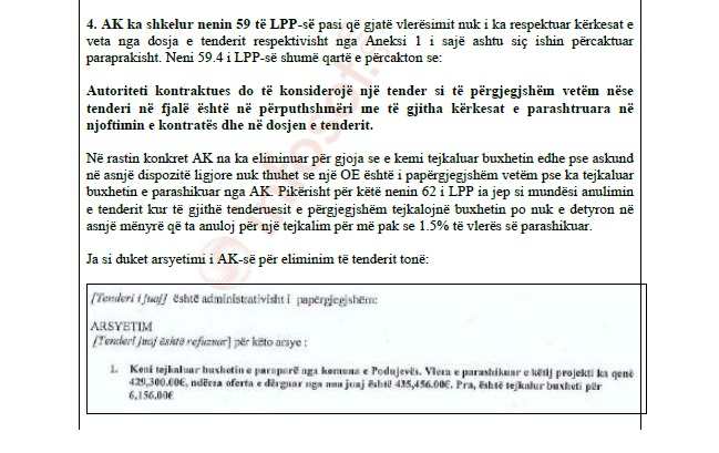 Sipas ankuesit dokumentacioni i përgatitur nga Komuna e Podujevës ka pasur mangësi dhe paqartësi të shumta, duke përfshirë specifikime jo të qarta dhe kritere që nuk i përgjigjen standardeve të përcaktuara me ligj. Operatori ankues pretendon se tenderi ka qëllim për të përshtatur kriteret sipas nevojave të një operatori të caktuar. Në ankesë përmendet se praktika të tilla cenojnë drejtpërdrejt buxhetin publik dhe rrezikojnë që një kontratë e rëndësishme prej 429 mijë euro të mos realizohet në mënyrë të drejtë dhe të ligjshme.