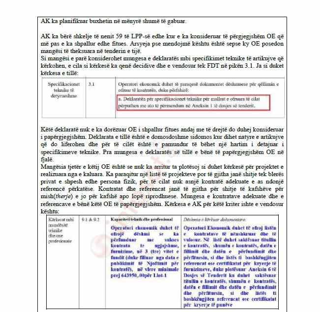 Në këtë linjë, ankuesi, pretendon se autoriteti kontraktues ka ndërmarrë veprime që cenojnë në mënyrë të drejtpërdrejtë konkurrencën e ndershme dhe që krijojnë hapësirë për dyshime mbi drejtësinë e gjithë procesit. Një tjetër pretendim i ngritur në ankesë ka të bëjë me dokumentacionin e tenderit.