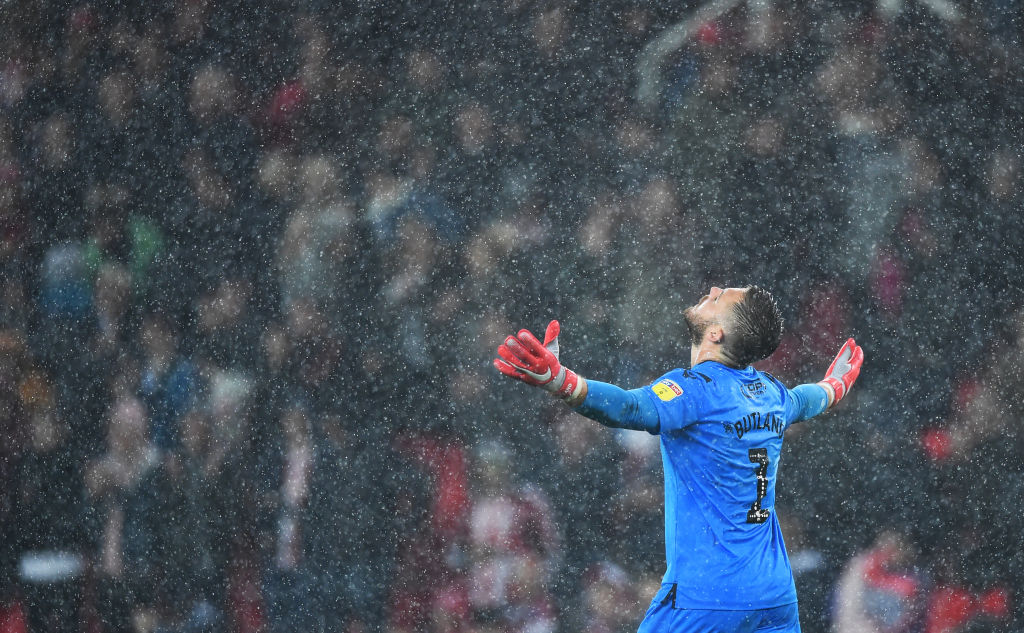 Portieri i Stoke Cityt, Jack Butland, duke iu gëzuar fitores ndaj Swansea Cityt në stadiumin Bet365 (Foto: Nathan Stirk/Getty Images/Guliver)