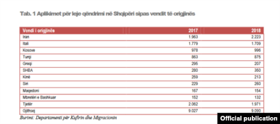 Bazuar në të dhënat e Institutit të Statistikave të Shqipërisë vetëm ne vitin 2018, në këtë shtet kanë kërkuar lejeqëndrim 2,223 persona nga Irani.