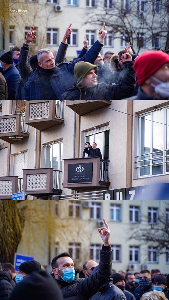 Gashi nuk ishte pjesë e protestës, por i shikonte nga zyra e tij e avokaturës duke e luajtur “tifozin e VV-së” – siç u quajt nga mediat vendore.