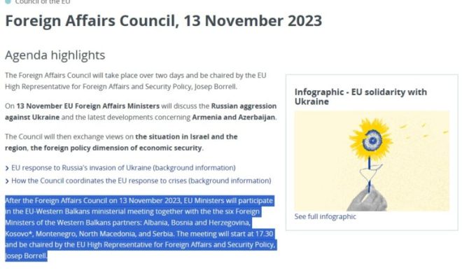 Pas Këshillit të Punëve të Jashtme, ministrat e BE-së do të marrin pjesë në takimin ministror BE-Ballkani Perëndimor së bashku me gjashtë ministrat e jashtëm të partnerëve të Ballkanit Perëndimor: Kosovë, Shqipëri, Bosnjë dhe Hercegovinë, Mal të Zi, Maqedoni të Veriut dhe Serbisë.