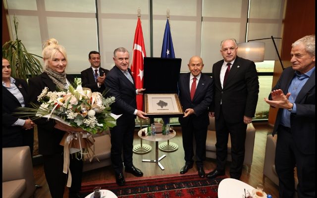 Nesër në mbrëmje do të luhet ndeshja Kosovë–Turqi. Sot, patëm kënaqësinë të presim në Kosovë Ministrin e Rinisë dhe Sportit të Republikës së Turqisë, z. Osman Aşkın Bak, së bashku me delegacionin e Federatës Turke të Futbollit dhe lojtarët e ekipit kombëtar, në shoqërinë e Ministrit të Rinisë dhe Sportit të Kosovës, z. Blerim Gashani, si dhe Ambasadorit të Turqisë në Prishtinë, z. Sabri Tunç Angılı.