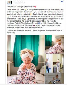 Ismaili përmes një postimi në Facebook ka bërë të ditur se operimi është kryer nga mjekët sllovenë si pjesë e marrëveshjes së Ministrisë së Shëndetësisë me SHSKUK-në dhe Klinikën e ORL-së.