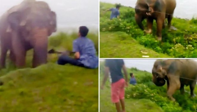 Një i dehur vendosi që të ngacmojë një elefant, por shpëtoi për fat, pasi elefanti e sulmoi.