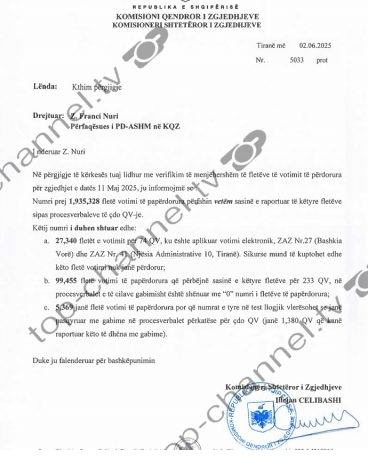 “Në përgjigje të kërkesës tuaj lidhur me verifikim të menjëhershëm të fletëve të votimit të përdorura për zgjedhjet e datës 11 Maj 2025, ju informojmë se :