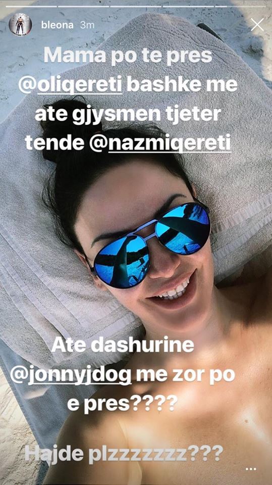 Pranda dhe na bën çudi që ka zgjedhur të relaksohet e vetme. Por nuk ka zgjatur gjatë, pasi me anë të një video në rrjetet sociale ajo i ka kërkuar të ëmës të vijë sa më shpejt pranë saj, por të mos harrojë të marrë me vete të atin si dhe qenin e saj.