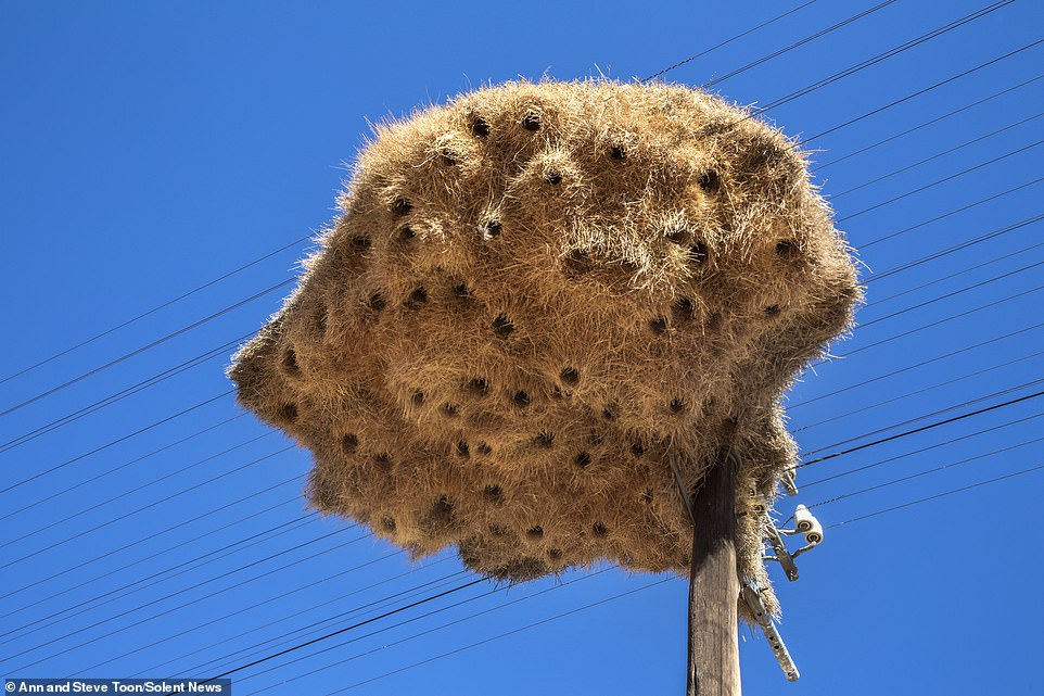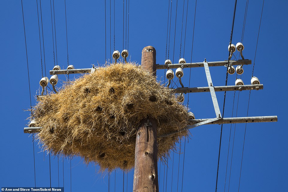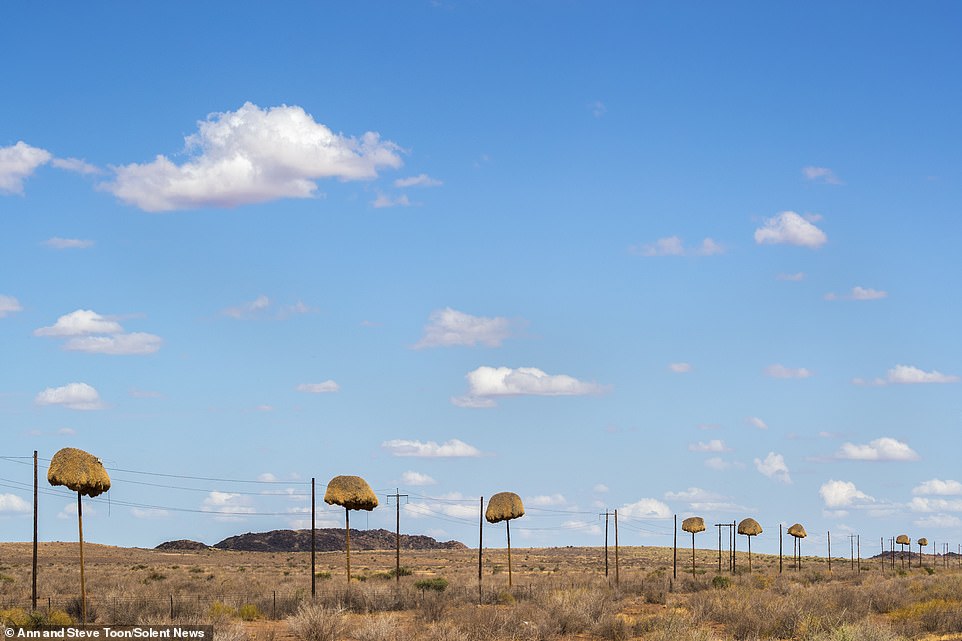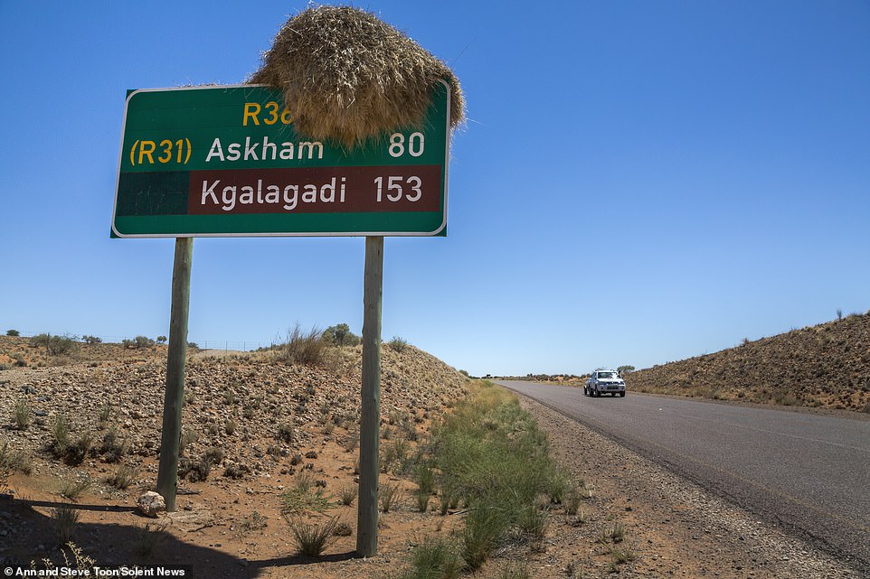 Mungesa e pemëve në Kgalagadi Transfrontier Park të Afrikës së Jugut, nuk i ka ndaluar zogjtë që foletë t’i ndërtojnë nëpër shtylla të telefonave dhe mbi shenja komunikacioni.