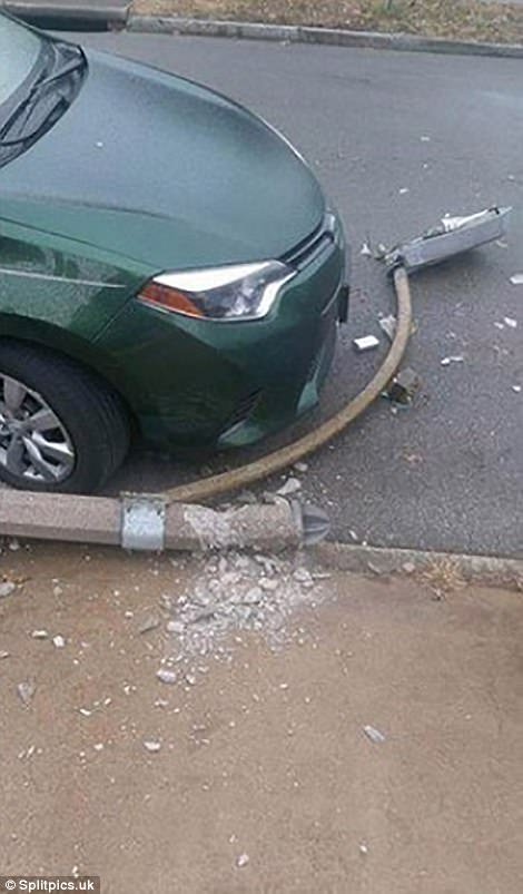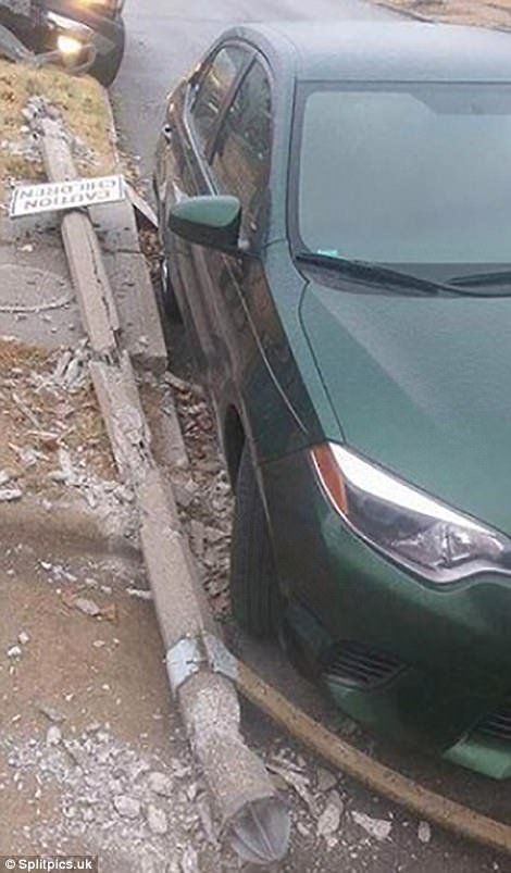 Një fotografi shfaq një veturë e cila kishte ngecur në kulmin e një ndërtese, ku gjysma e saj kishte përfunduar jashtë duke qëndruar e varur, kurse pjesa ku është shoferi ka mbetur brenda dhe i ka shpëtuar më të keqes.