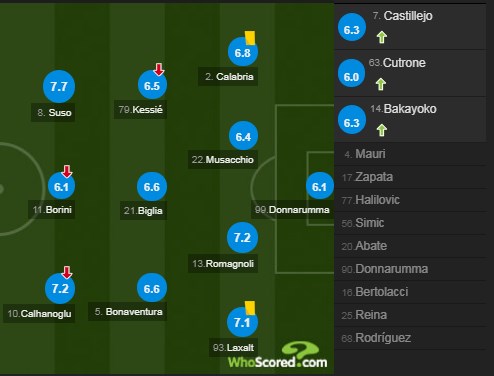 Te Milani paraqitjen më të mirë e kishte spanjolli Suso që është notuar me 7.7.