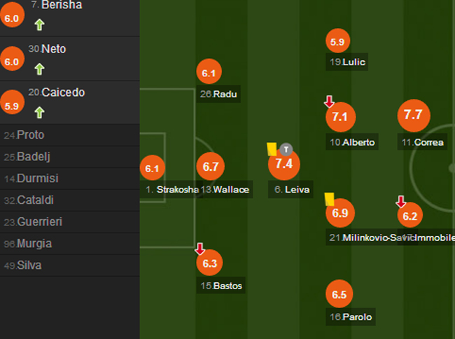 Notat e lojtarëve të Lazios (Foto: WhoScored)