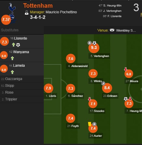 Aurier,Alderweireld, Sanchez, Foyth e Winkins po ashtu u paraqitën mirë.