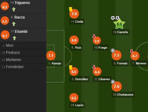 Notat e lojtarëve të Villarrealit (Foto: WhoScored)