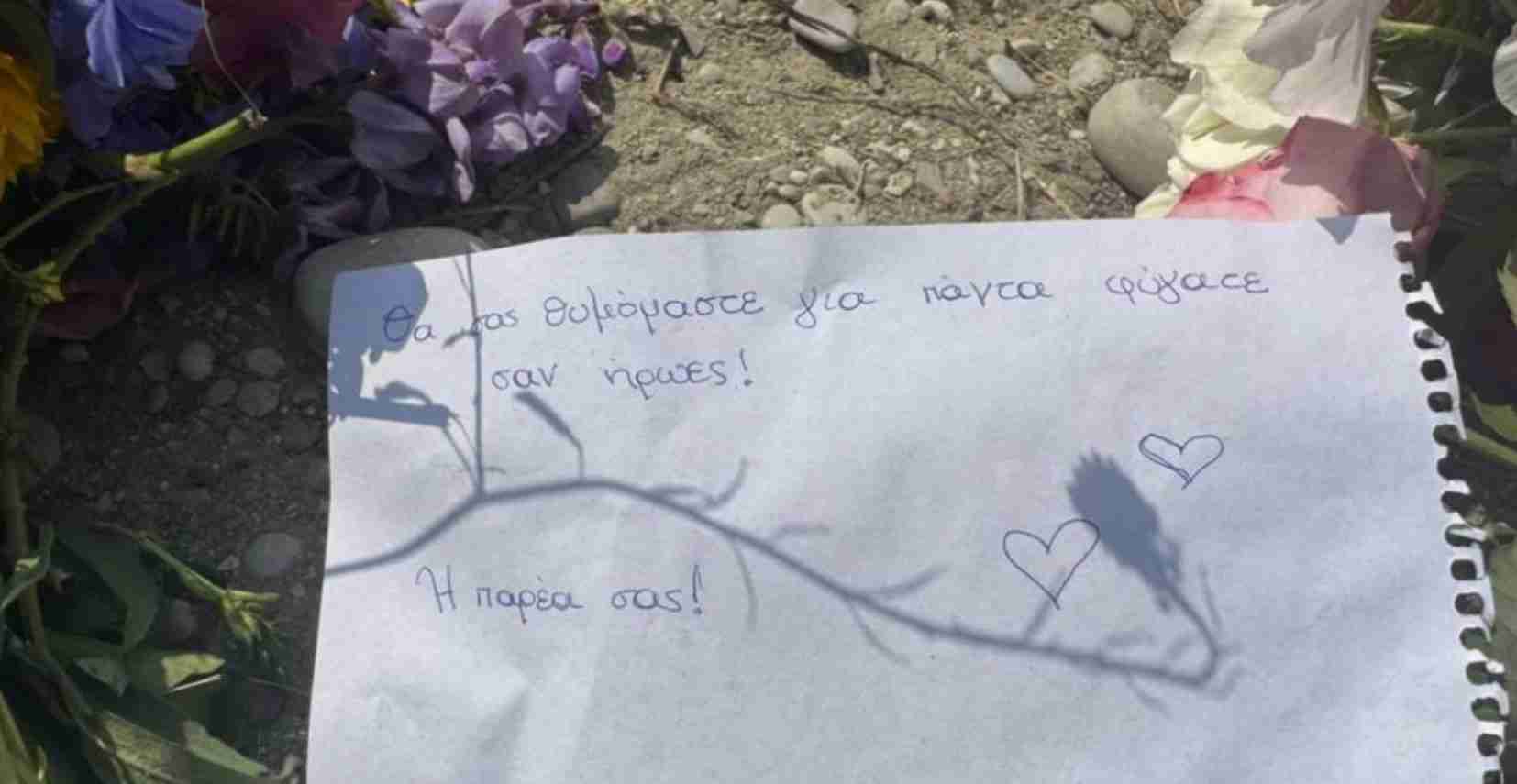 Spyrosi 14-vjeçar u hodh në lumë për të shpëtuar shokun e tij 12-vjeçar ndërsa në vendin ku ndodhi tragjedia, miqtë e tyre kanë vendosur lule dhe mesazhe prekëse ndërsa aty ka ardhur dhe emigranti shqiptar që u zhyt në ujë për të shpëtuar.