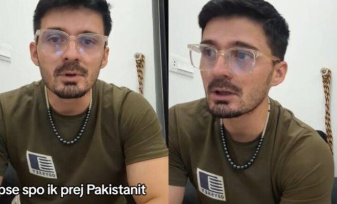 “Për ju që jeni tu thanë që ja ka nis lufta mes Pakistanit edhe Indisë, e di se këtu jam vetë unë”, e nisi videon shqiptari.