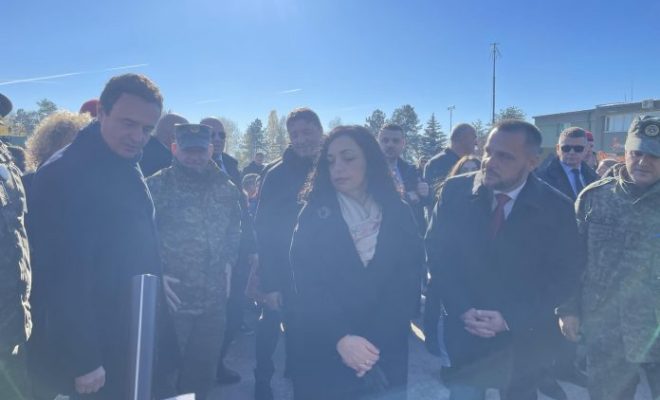 Presidentja Vjosa Osmani dhe kryeministri Albin Kurti kanë arritur në ceremoninë e shënimit të Ditës së Forcës në kazermën “Adem Jashari” në Prishtinë.