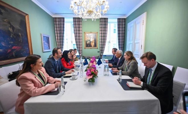 Presidentja e Kosovës, Vjosa Osmani, ka takuar të shtunën presidentin e Këshillit Evropian, Antonio Costa, në Konferencën e Sigurisë në Munih.