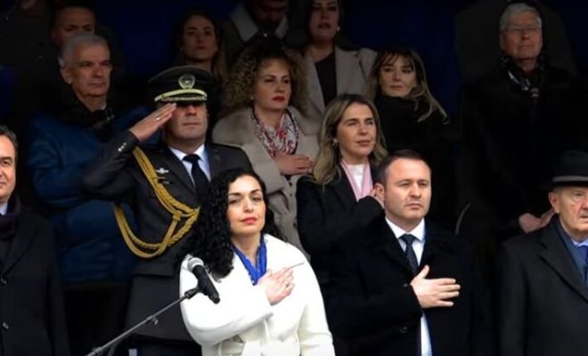 Në ceremoninë e marshimit të FSK-së dhe Policisë së Kosovës për 17 vjetorin e shpalljes së Pavarësisë së Kosovës, presidentja Vjosa Osmani ka folur për luftën për liri e shtet ndërtim.