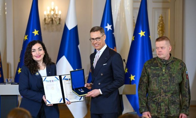 Presidentja e Republikës së Kosovës, Vjosa Osmani gjatë ditës së djeshme në Pallatin Presidencial në Helsinki, ka ndarë Medaljen Presidenciale Ushtarake për Forcat e Armatosura të Finlandës.