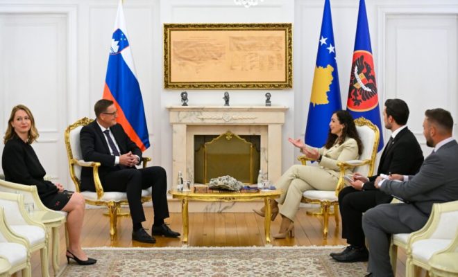 Ndër të tjera, në takim, Presidentja Osmani përmendi rolin e Sllovenisë si një nga iniciatorët e Procesit Brdo-Brijuni dhe theksoi rëndësinë që Kosova i kushton këtij formati si platformë për dialog rajonal, stabilitet dhe perspektivë evropiane për Ballkanin Perëndimor.