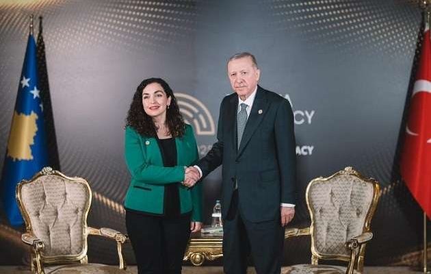 Presidentja Vjosa Osmani u takua me homologun e saj turk, Recep Tayyip Erdogan.