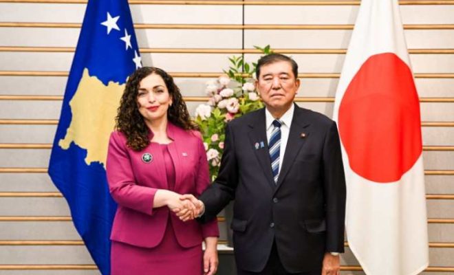 Presidentja e shtetit, Vjosa Osmani, e cila po qëndron për një vizitë zyrtare në Japoni, ka takuar sot në Tokio kryeministrin e këtij shteti, Shigeru Ishiba.