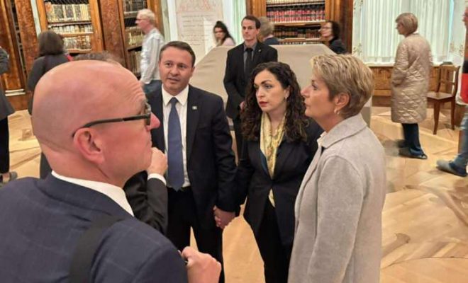 Në kuadër të vizitës shtetërore në Zvicër, presidentja e Republikës së Kosovës, Vjosa Osmani, së bashku me Presidenten e Konfederatës Zvicerane, Karin Keller-Sutter, vizitoi Bibliotekën e St. Gallenit, një nga bibliotekat më të vjetra në botë, raporton Ekonomia Online.