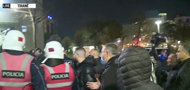 Tiranë/Protestuesit sulmojnë me molotovë selinë e PS-së, policia hedh ujë drejt tyre