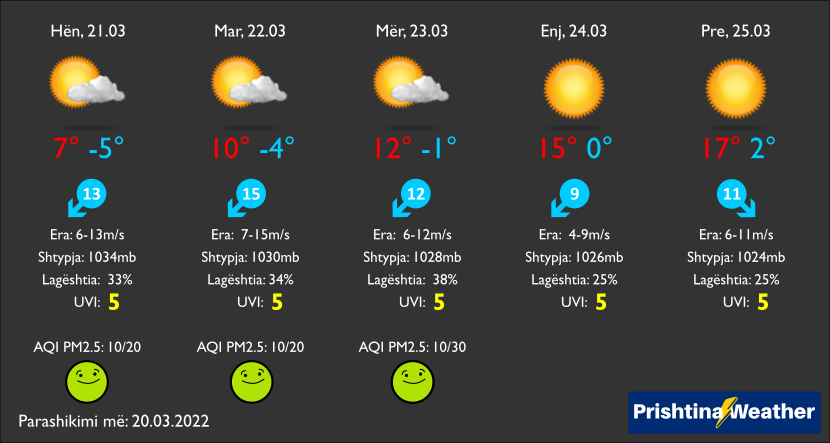 Dje zyrtarisht kemi hyrë në stinën e pranverës dhe sipas ‘Prishtina Weather’ do të kemi mot stabil e kryesisht me diell.